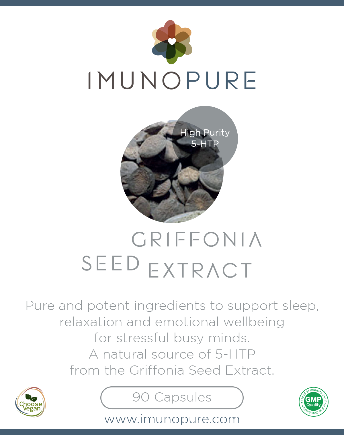 5-HTP or 5-hydroxy-tryptophan is an amino acid found in protein rich foods such as meats like turkey or chicken and dairy products such as cheeses.  Our 5-HTP supplement is a natural source extracted from the Griffonia plant found in West Africa.  Research and studies show that 5-HTP supports the production of the brain chemical serotonin.  Higher level of serotonin in our bodies have a positive effect on low moods.  5-HTP also has other positive effects on our bodies including helping to regulate behaviour, control of appetite, sleep plus memory and learning.